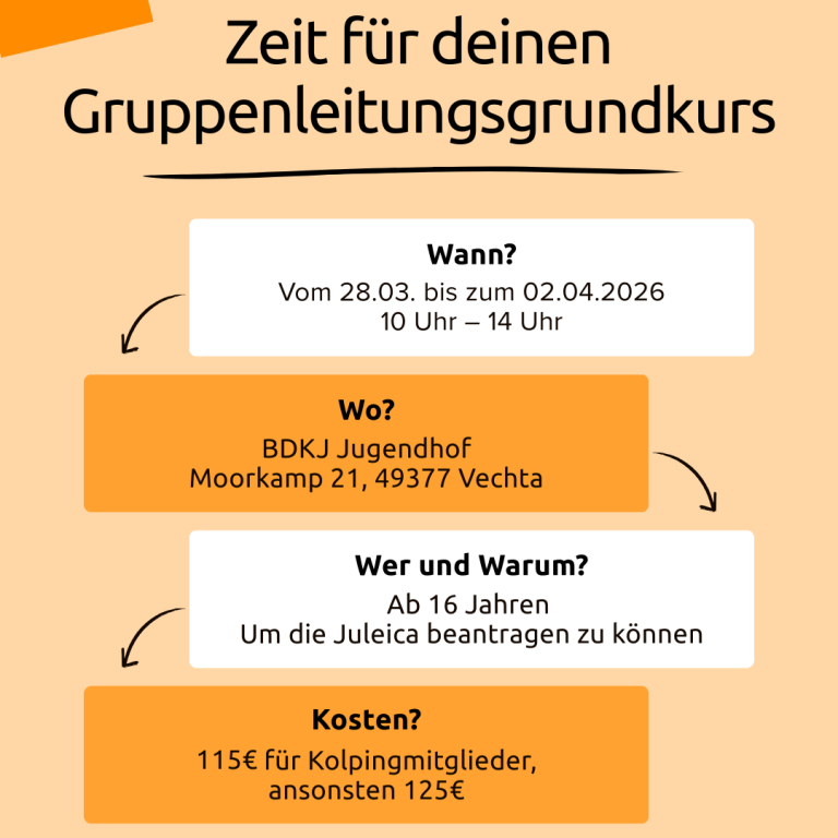 In der Woche vom 05. bis zum 10. Oktober 2024 haben sich 12 Jugendliche auf dem BDKJ-Jugendhof in Vechta als Gruppenleiter*innen ausbilden lassen. Unter der Leitung von Alexander Themann und Carolina Moreira Killmann wurden unter anderem die Themenfelder Spielepädagogik, Rechte und Pflichten von Gruppenleiter*innen sowie die Programmplanung in der Jugendarbeit mit abwechslungsreichen Methoden erarbeitet. Auch eine Schulung zur Prävention von Kindeswohlgefährdung war Teil des Kurses. Ein besonderes Highlight waren die erfolgreich absolvierten Kooperationsübungen, welche die Gruppen eng zusammenwachsen ließen.